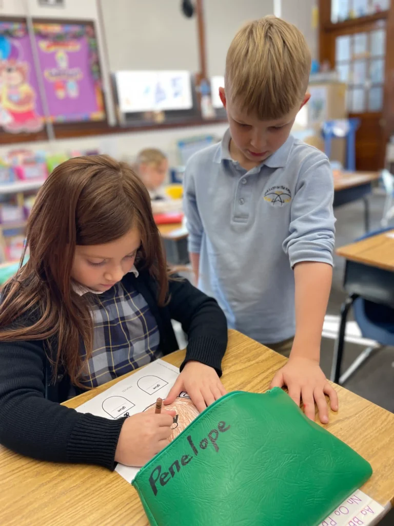 At Our Lady of the Angels, our students are encouraged to dive deeper into their thinking. At the primary level, our students have a strong literacy program that teaches phonics, grammar, and spelling. They begin to have homework assignments appropriate for their age and are expected to complete work neatly. We teach appropriate handwriting in the lower grades, and in second grade, our students learn cursive writing.